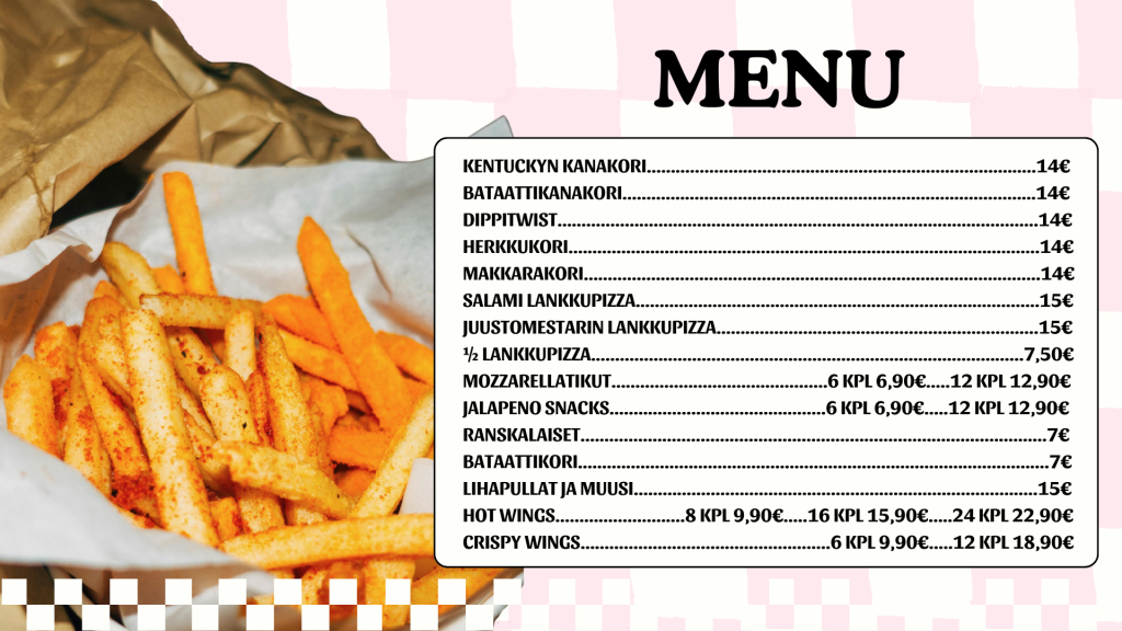 Meiltä voit ostaa pelaamisen lomassa maistuvaa ruokaa. Syö meillä tai nappaa mukaan!
